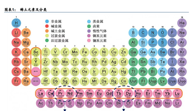 稀土是指元素周期表中的 17 種鑭系和其他相似的元素氧化物的總稱。十七種稀土元素通常 分為輕稀土和中重稀土,其中輕稀土包含鑭、鈰、鐠、釹等;重稀土包含釓、鋱、鏑、鈥 等。自然界中共有 250 余種稀土礦,其中中重稀土礦由于價(jià)值高儲(chǔ)量少,比輕稀土更寶貴。