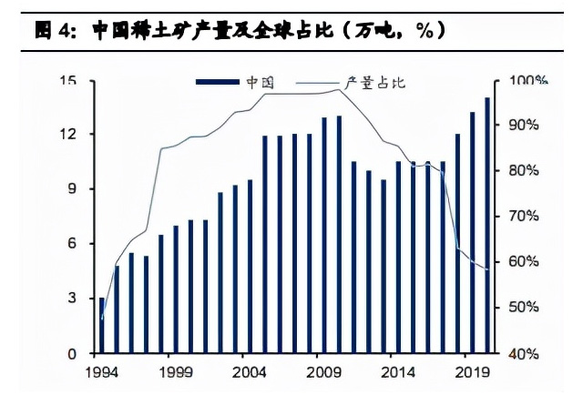 突出的稀土儲備,讓中國一直供應(yīng)著全球大部分的稀土。 我國的稀土產(chǎn)量,從1994年的3萬噸,逐年提升至2010年的13萬噸。 國內(nèi)企業(yè)爭相開采稀土,低價出口海外。